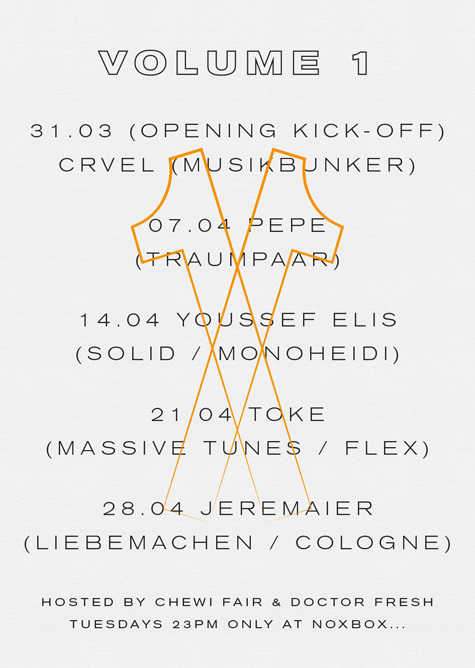 Key visual system and posters for the party series Tuesday Together. The layout idea is based on the structure of magnetic fields. Art Direction: Max Kuwertz. Agency: C/O.